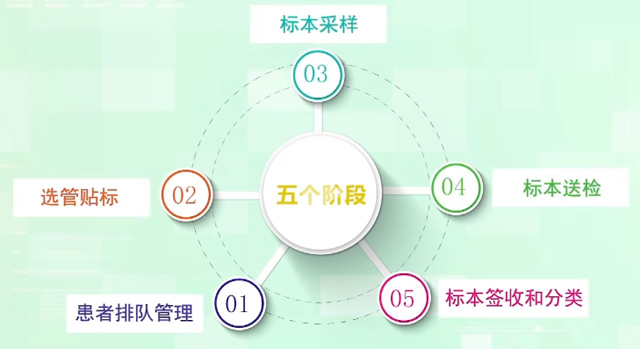 患者排隊管理 選管貼標 樣本采樣 樣本送檢 標本簽收跟分類。這5個階段是醫院臨床檢驗分析前需要經過的標準流程。完成這些流程原來是靠人工操作來完成。這種人工操作,占用了醫護人員的大量時間,導致了抽血檢查的效率不高。容易出錯以及一系列不規范問題。1%的失誤將會對患者的健康生命帶來嚴重的威脅。需要更好的來完成這些流程跟解決這些問題。讓醫護人員的醫護效率提高服務更好醫療更精確。
