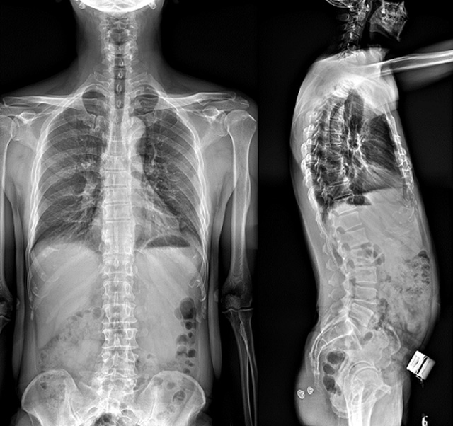 (7)全身拼接功能對有較大尺寸全脊柱拼接圖接桂成金下股分成幾次拍攝,再經過秋件開在骨科開展的全脊柱畸形矯治工作中,雖然CT. MRI也能獲取全脊柱影像,接圖像,以便于長度、角度、力線等測量和察脊柱在重力情況下但不能進行立位檢查,無法觀全景觀察。全身拼接功能是高等級DR攝取患者立位全下的功能狀態圖像,因此采用動態醫院特別看重的動態DR功能之一。注:圖中Cobb脊柱正側位圖像是首選的檢查方法角度的大小是反映側彎嚴重程度的一個標準。